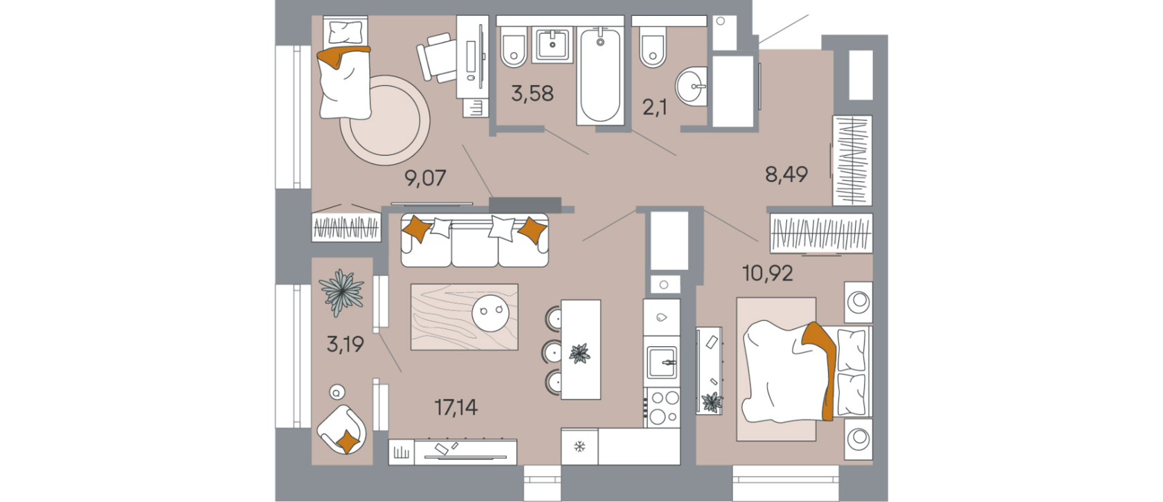 - Двухкомнатные квартиры: от 54.92 м² – от 5 456 000 руб. – прекрасный выбор для небольших семей.